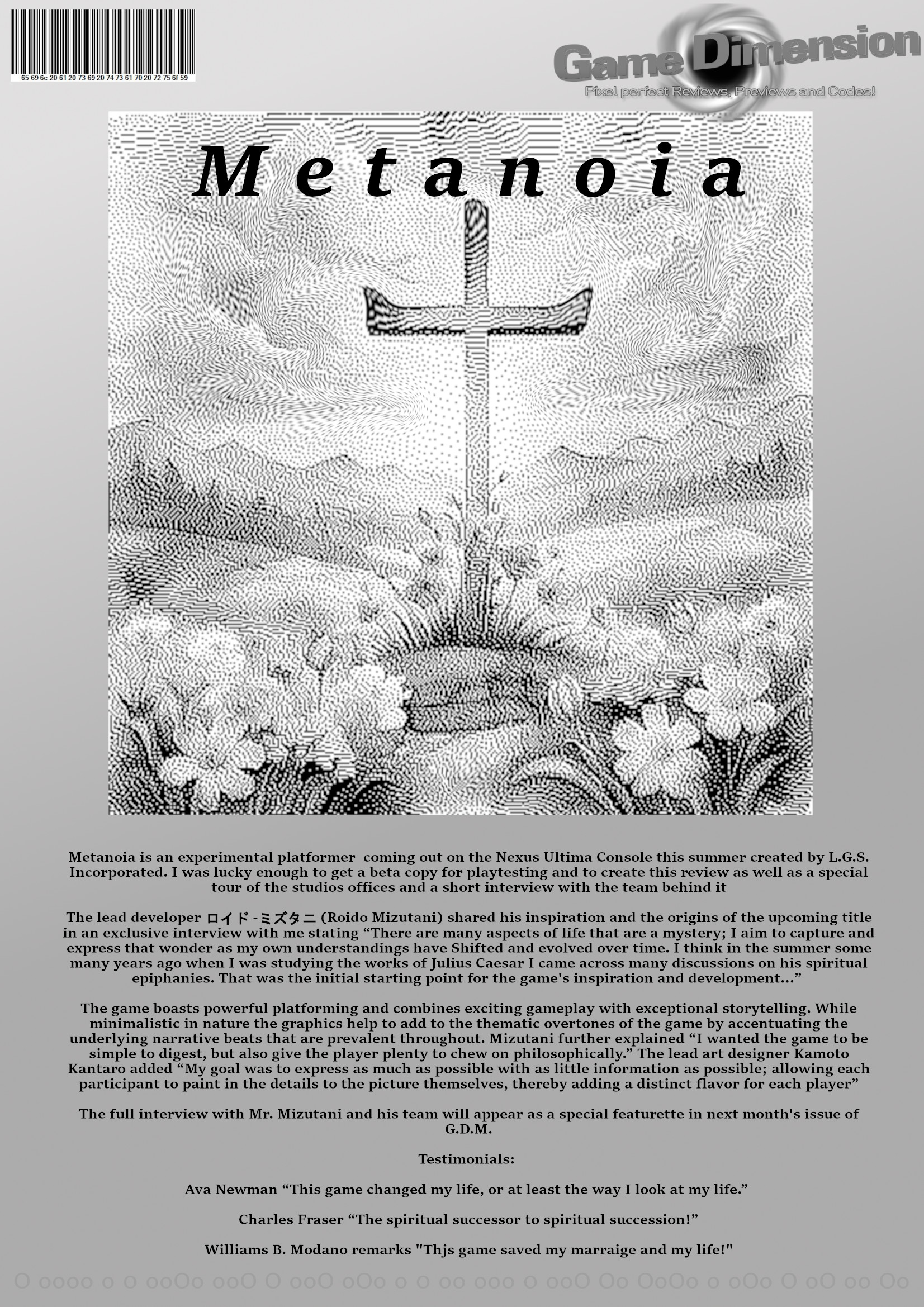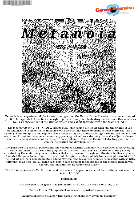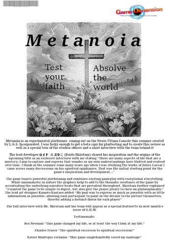 Metanoia- Game Dimension Jam Magazine Page